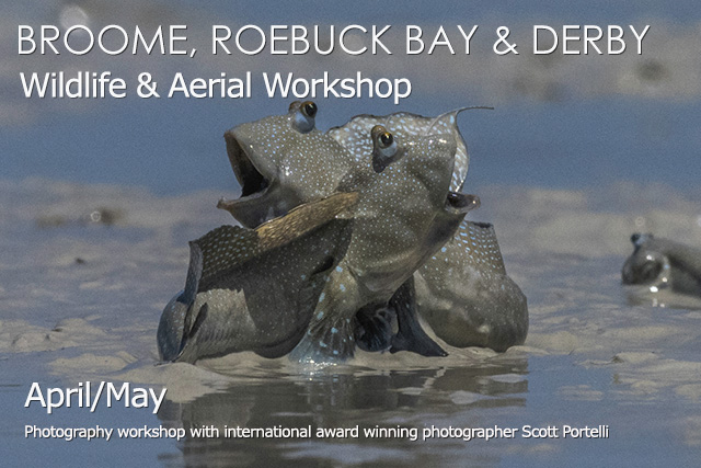Join us in Broome to experience the deep red earth, lush green mangroves, milky-blue ocean, and long sandy beaches that dominate the landscape. In Roebuck Bay we will see the massive expanses of mud-flats that are teeming with shorebirds, crabs, and a very charismatic fish, the mudskipper. We also venture out to some birding hotspots to photograph some of the most diverse range of birds in the region. This workshop will focus on the multitude of birds and other wildlife. The landscapes are dramatic and full of vivid colours. Our flights over the coastline will allow for some aerial photography of Australia’s Kimberley coast.