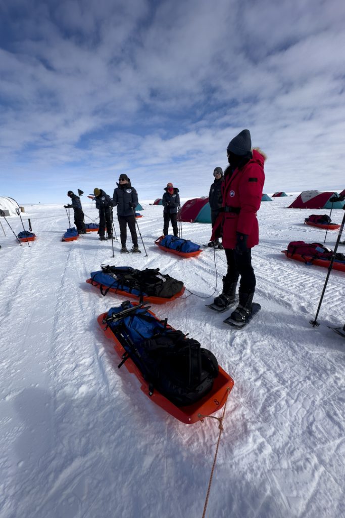 The emperor penguin camp is approximately 2-3 kilometers walk from the main emperor penguin colony. We walk across the frozen sea ice pulling small sleds behind us with our camera equipment, spare clothing, water bottles, pee bottle etc. Sleds and walking poles will be provided for you at the emperor penguin Camp.